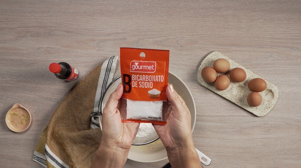 Por su parte, como mencionamos anteriormente, el bicarbonato de sodio necesita de un ácido y de un líquido para activarse, y cuando se activa libera dióxido de carbono que es lo que hace que las preparaciones suban y se aireen, y por eso las recetas que llevan bicarbonato siempre llevan algún ácido en la mezcla como limón, puede ser buttermilk o también, azúcar rubia.